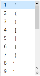 ㄴ+한자키 " ( ) [ ] { } ‘ ’ “ ” 〔 〕 〈 〉 《 》 「 」 『 』 【 】 |