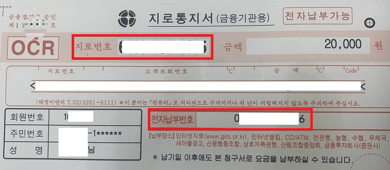 1. 지로영수증에서 지로번호와 전자납부번호를 확인 합니다.