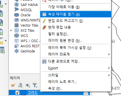 (1) 생성된 그리드 Layer에서 "속성" 으로 진입합니다.