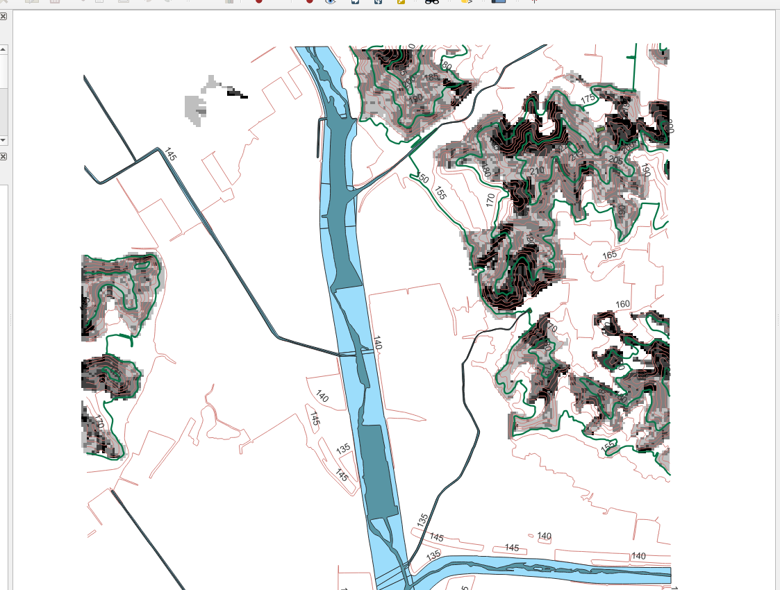 : 각 산사태등급의 테두리에 검은색 라인이 잘 들어가 있는 산사태 위험지도가 되었습니다.