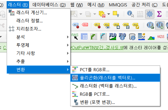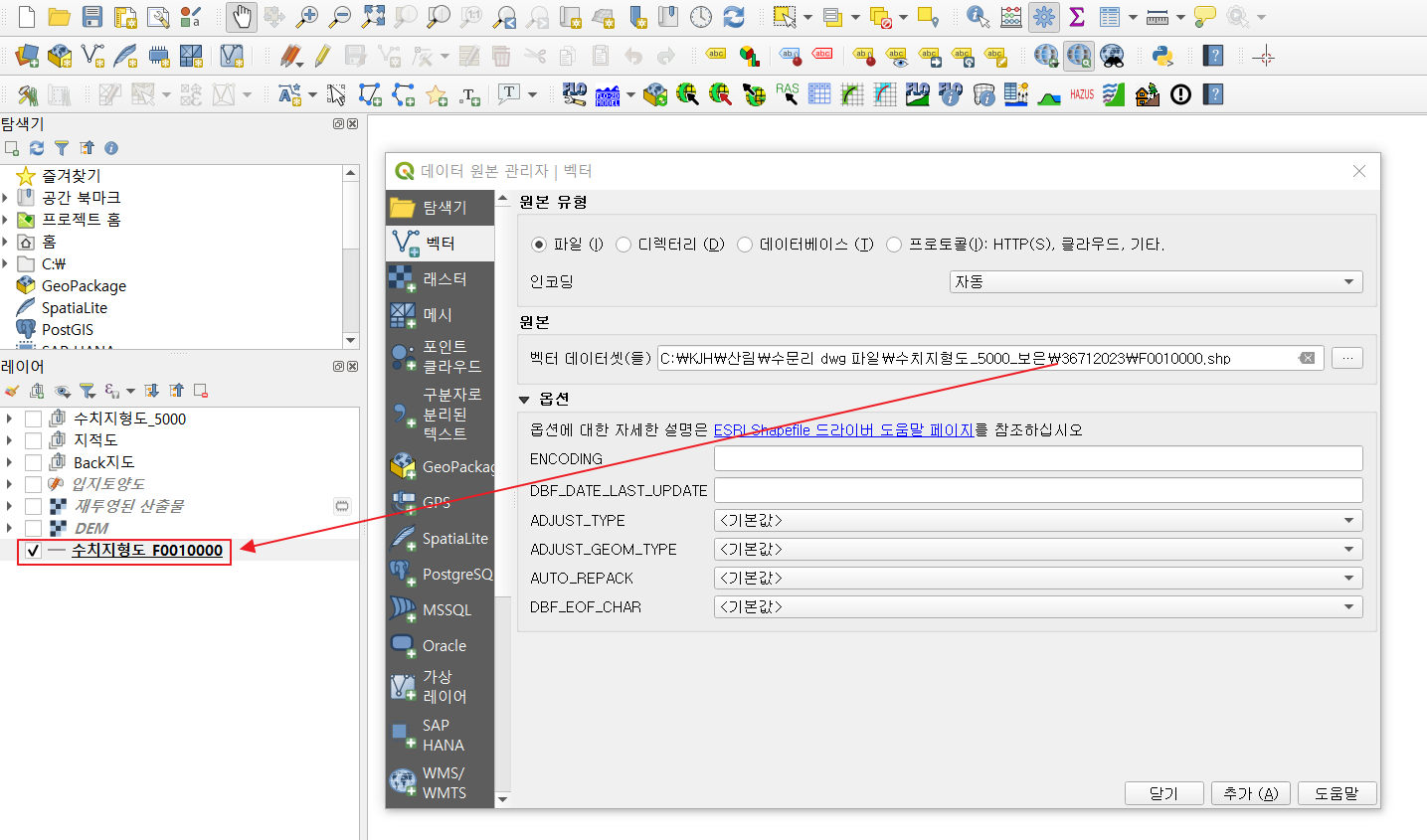 Qgis 수치지형도를 이용한 등고선표시, 하천표시 (TIN 보간)