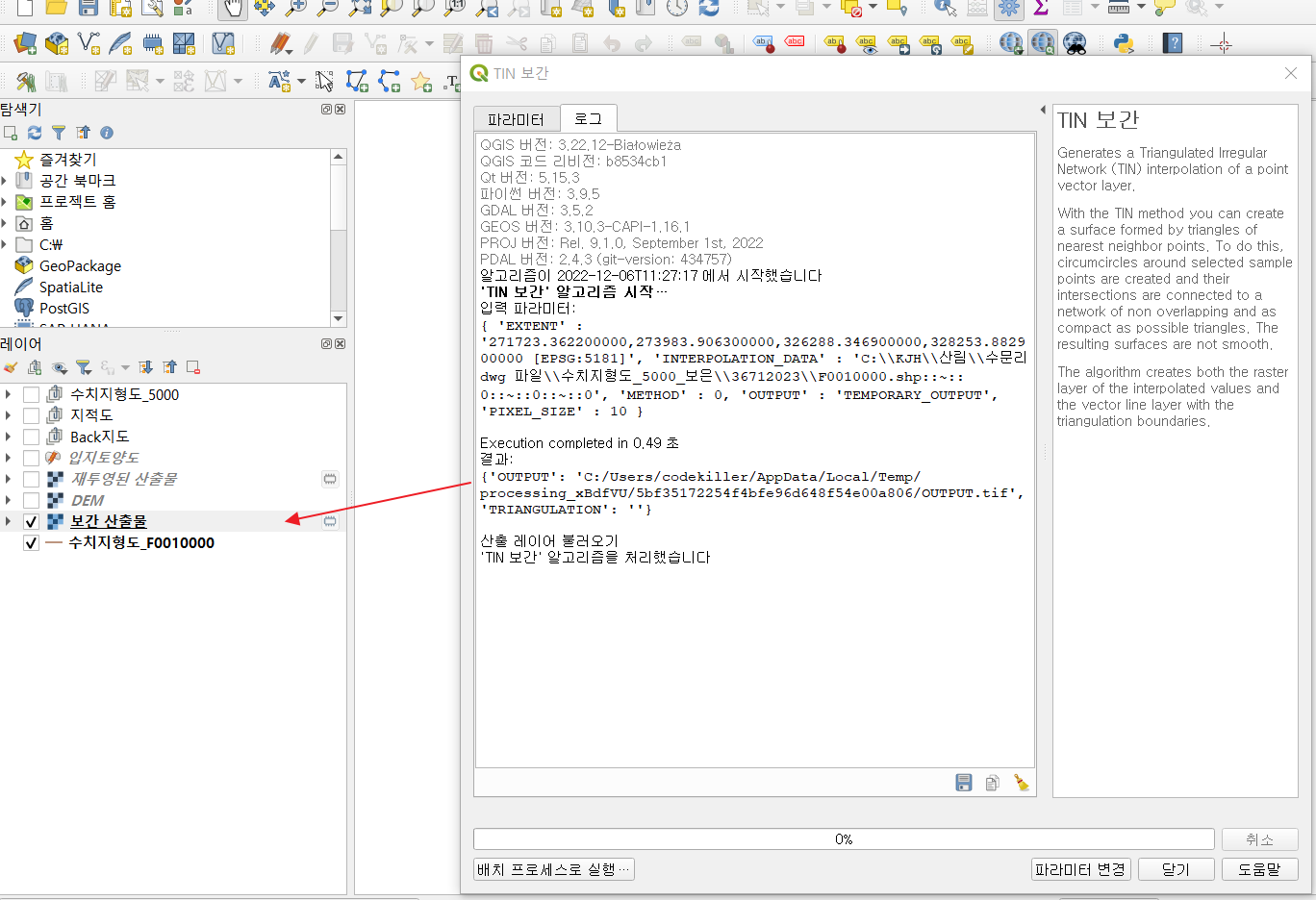 Qgis - 수치지형도 등고선을 이용한 DEM 생성 (TIN 보간)