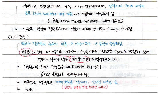 잔뿌리의 90%이상이 표토 12Cm 깊이 안에 모여 있음