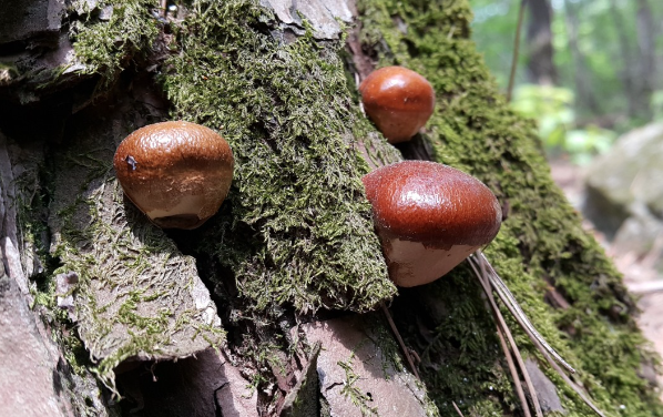 - 여름에서 가을에 걸쳐 소나무 생목이나 고사목에 무리 지어 나는 일년생 목재부후균 (백색부후)