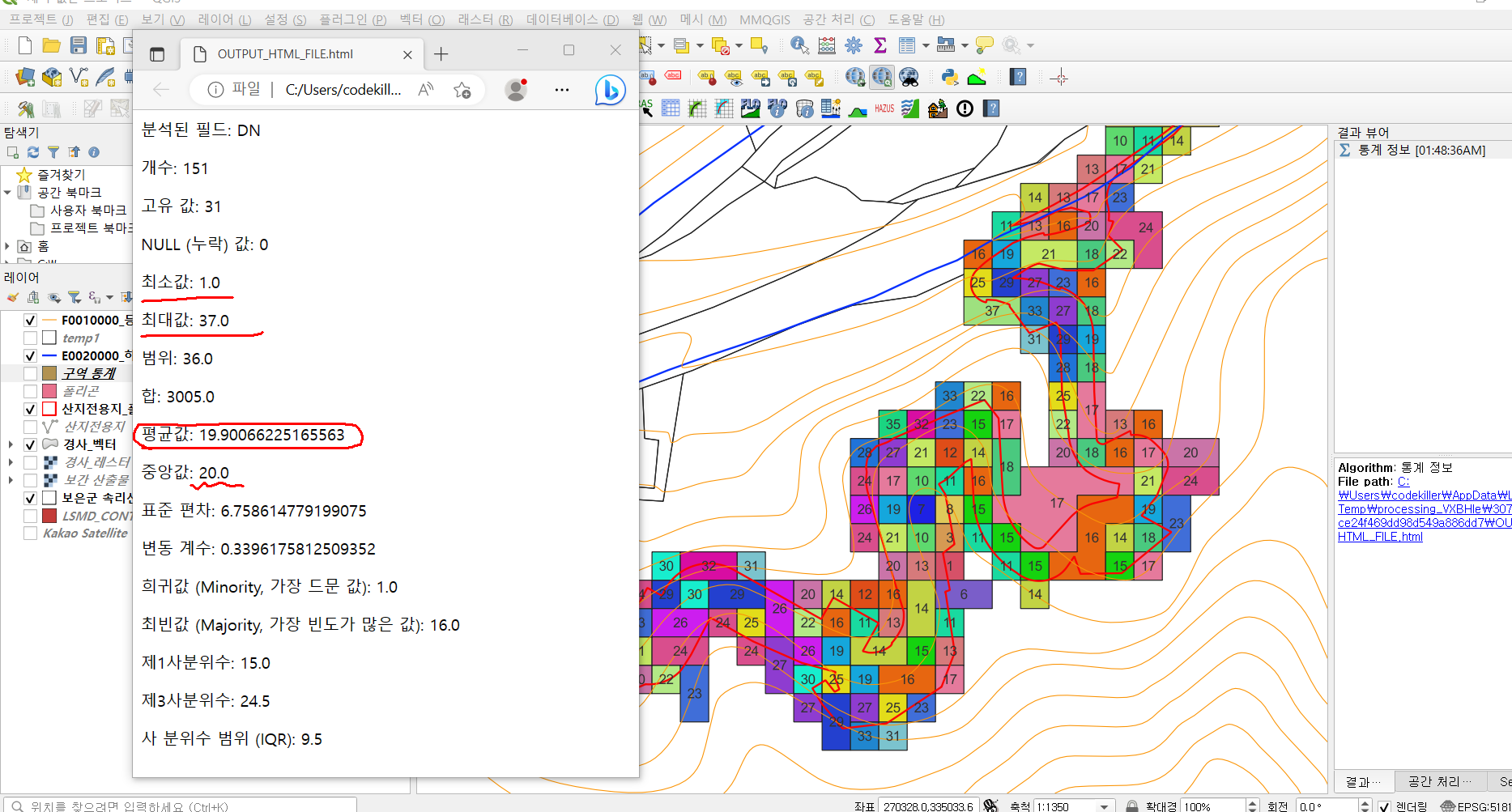 5. 벡터-분석도구-필드에 대한기본통계 기능을 이용한 통계